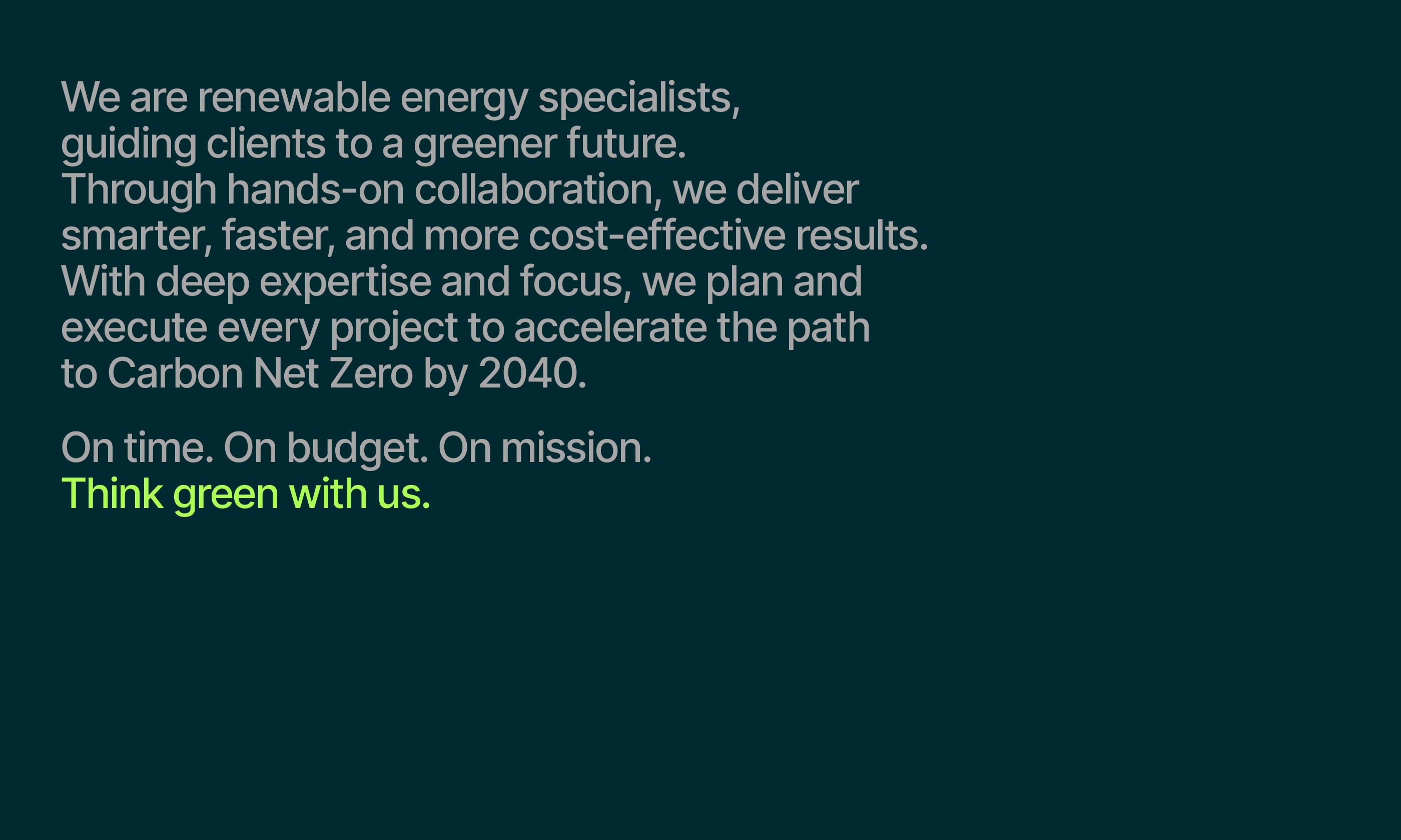 Amarna began as a fast-moving team of engineers focused on decarbonisation. As they scaled, they needed a brand that matched their technical authority while keeping the human collaboration at the centre. The direction was to position them as leaders in renewable energy without losing approachability.